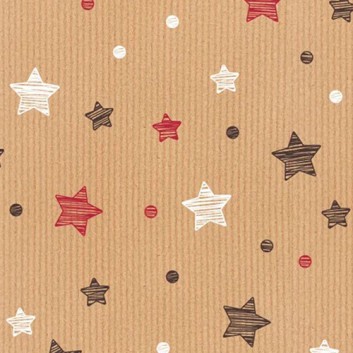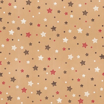 Weihnachts-Geschenkpapier; 50 cm x 200 m; Sterne; rot-weiß-braun auf naturbraun; 076; Kraftpapier braun enggerippt ca. 60 g/qm
