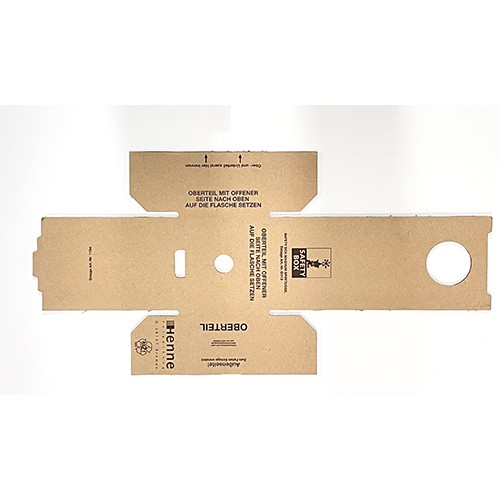* Flasche in den Karton stellen und dann Oberteil mit dem kleinen
