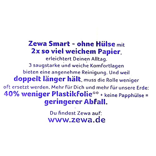 ZEWA Toilettenpapier, Smart (kernlos) | Artikel-Nr.: | 290139 |