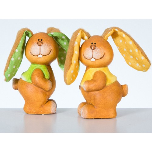 Osterhase; mit Stoffohren; grün (gelb = ausverkauft); 5 x 4 x 8 cm; Magnesia mit Kunstfell