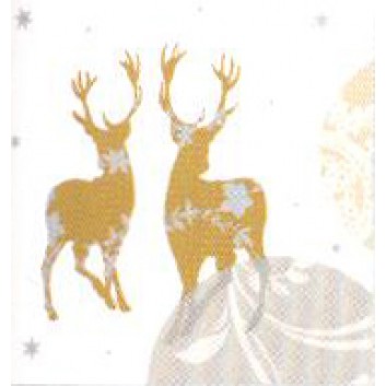 Duni Weihnachts-Servietten; 33 x 33 cm; Rentiere; gold-silber; 163797; 3-lagig; 1/4-Falz (quadratisch); Zelltuch
