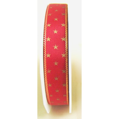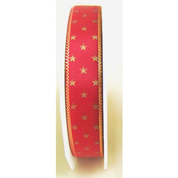 Präsent Weihnachts-Geschenkband; 15 mm x 25 m; Island: Sterne; gold auf rot; 87-15-25-609; ohne Draht; Textilband