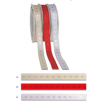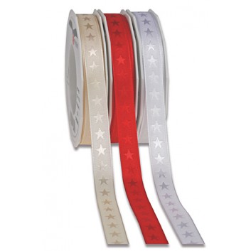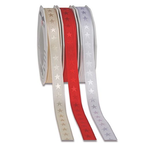 ; 15 mm x 20 m; Stern; weiß / creme* / rot: Ton-in-Ton; 651-15-20..; ohne Drahtkante; Textilband
