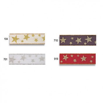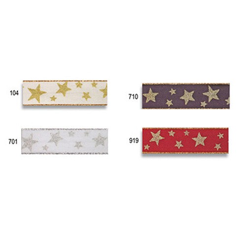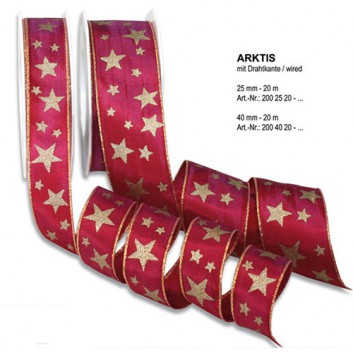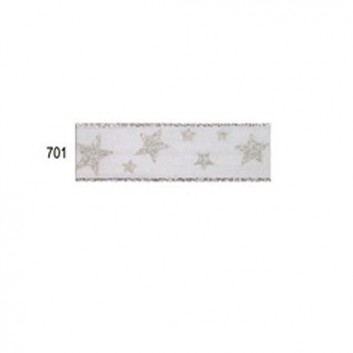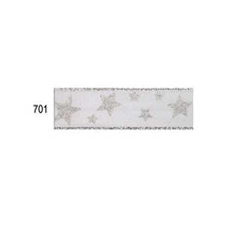 Präsent Weihnachts-Geschenkband; 25 mm x 20 m; Arktis: Silbersterne; 701 = weiß-silber; 200-25-20-701; Textilband; mit Draht