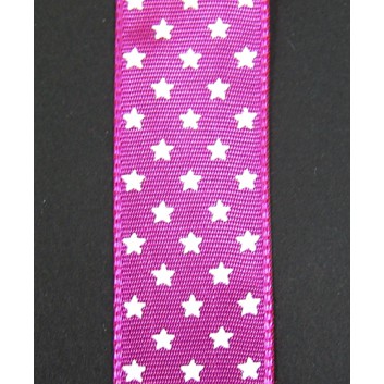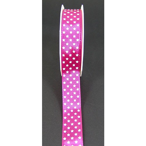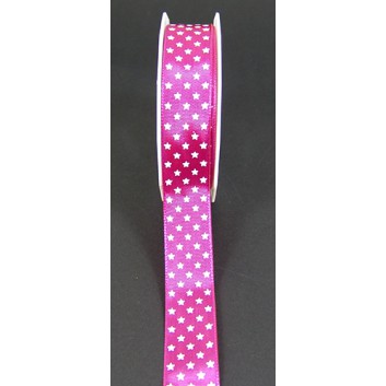 Präsent Weihnachts-Geschenkband mit Dr; 25 mm x 20 m; Mini-Stars: Sternchen, weiß; 169 = pink; 301-25-20-169; mit Draht; Textilband