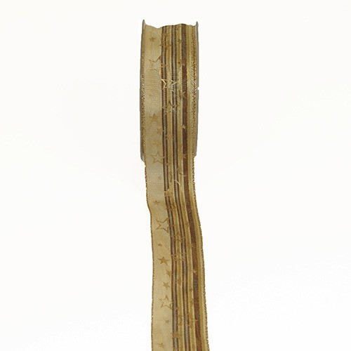 Weihnachts-Geschenkband; 40 mm x 20 m; It's Christmas; 810 = creme-braun; 245-25-20-710; Textilband; mit Draht