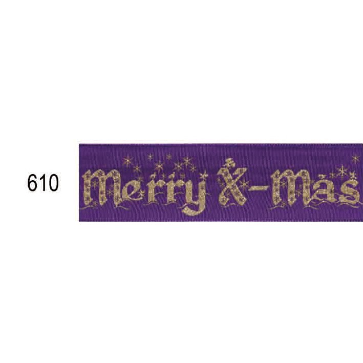 Präsent Weihnachts-Geschenkband; 25 mm x 20 m; Merry Xmas; 610 = lila; 153-25-20-610; Textilband; mit Draht