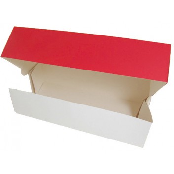 Lebensmittel-Karton/Stollenkarton; 39 x 18,4 x 9,2 cm; uni; Lack, rot; Vollpappe; 1-teilig, z.B. für Stollen; Länge x Breite x Höhe = Innenmaß