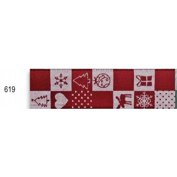 Präsent Weihnachts-Geschenkband; 25 mm x 20 m; Kästchen mit Weihnachtsmotiven; 619 = bordeaux; 672-25-20-619; Textilband; ohne Draht