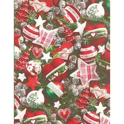 ; 50 cm x 250 m; Fotomotiv: Kugeln, Sterne; rot-grün; 4A5621; Geschenkpapier, gestrichen-glatt 80 g/qm