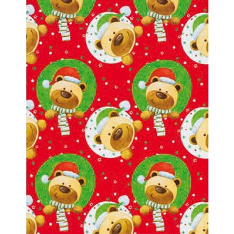 ; 50 cm x 250 m; Kindermotiv: Teddy mit Mütze; rot-grün; 4A5550; Geschenkpapier, gestrichen-glatt 80 g/qm